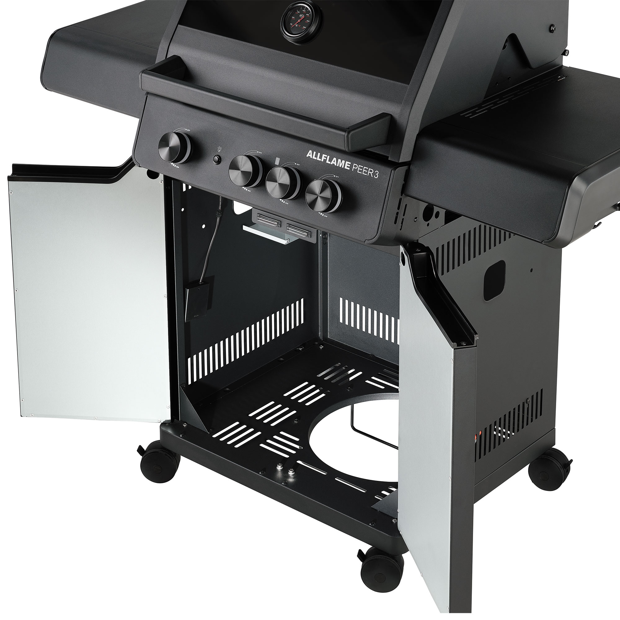 Rösle AllFlame Peer 3 – це газовий гриль з 3 ефективними основними пальниками HEATSPIRE з нержавіючої сталі (кожна 3,5 кВт), які забезпечують швидке нагрівання та дуже рівномірний розподіл тепла.