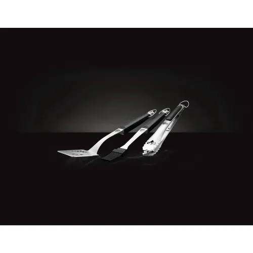 • Удобные щипцы с фиксатором, большая и крепкая многофункциональная лопатка и силиконовая щетка для смазки с длинной ручкой.