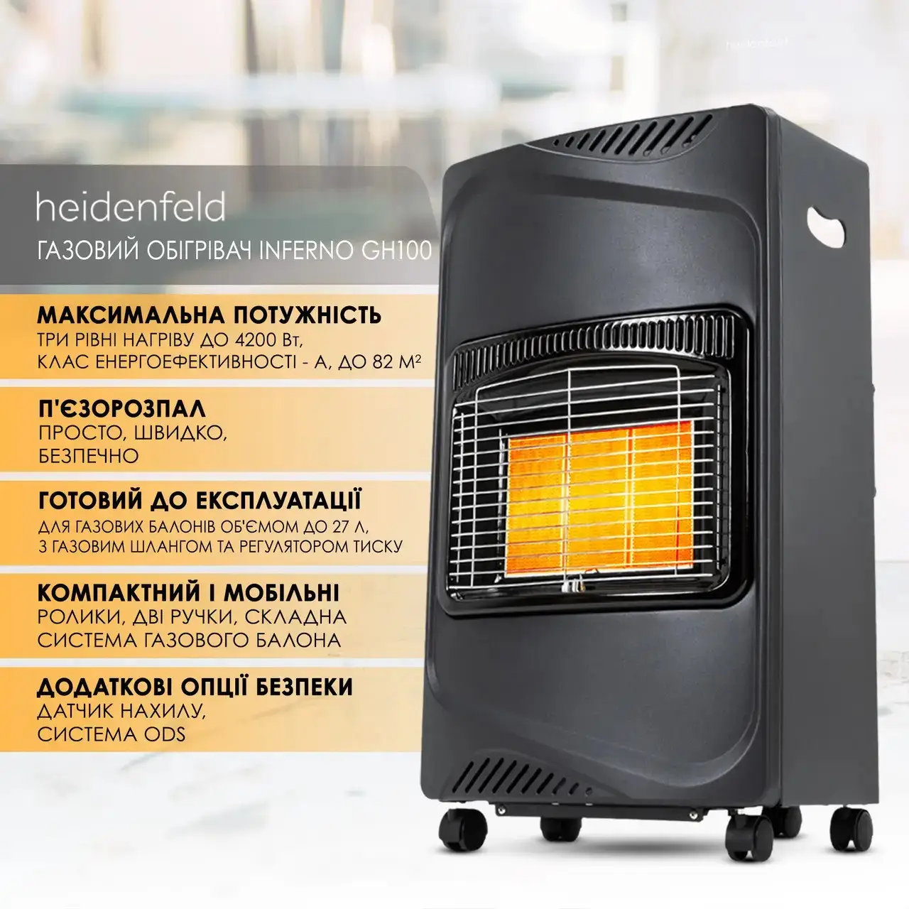 В комплект входит: Напольный газовый обогреватель Heidenfeld Inferno GH100 (арт.: GH100):